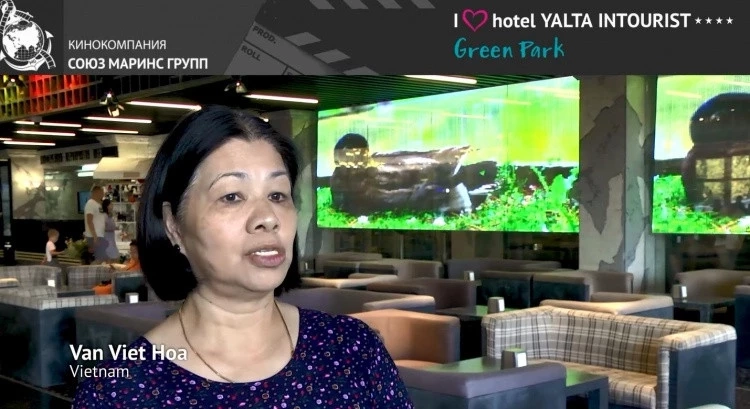 Например, гостья Ван Вьет Хоа сказала следующее: «Мы впервые в Крыму и впервые в Отеле Yalta Intourist. Приехали большой группой туристов, чтобы посмотреть красоты полуострова. Хочу отметить, что Отель Yalta Intourist создает очень хорошее впечатление. Отель располагает шикарной инфраструктурой! Здесь есть много бассейнов, свой собственный пляж, прекрасная природа вокруг. Мы приехали издалека, и для нас такие условия отдыха – очень комфортные!»