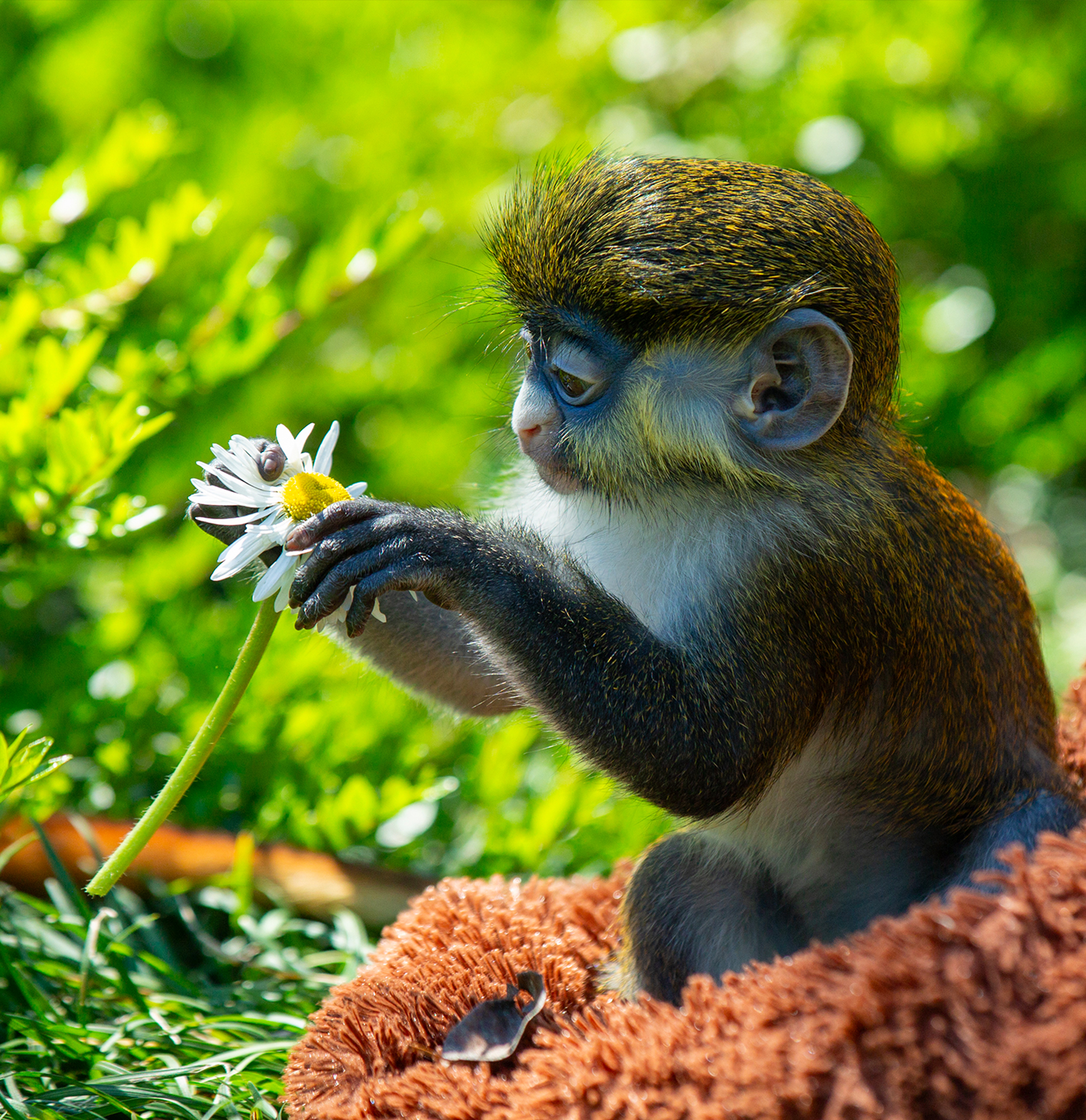 - Краснохвостые мартышки здороваются необычным способом: они подходят друг к другу и соприкасаются носами. Так обезьянки узнают друг друга и поддерживают социальные связи в группе.